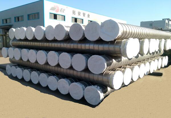我公司生產的管材壁厚從1.2mm~4mm,管徑從100mm~1600mm,是目前國內最大的以薄壁卷板形式生產螺旋焊管的企業(yè)。原料采用優(yōu)于國標的鋼帶,管材生產采用自主研發(fā)的國內首創(chuàng)先進的鋼帶疊加纏繞工藝、采用世界先進的完全自動化的焊接技術。具有加工工藝先進,綜合性價比高等優(yōu)點。是一種技術先進、環(huán)保、節(jié)能、無污染、可重復利用的創(chuàng)新產品,被列為河北省重點發(fā)展項目之一。同時填補了國內新型加強筋瓦斯抽放管道的市場空白。